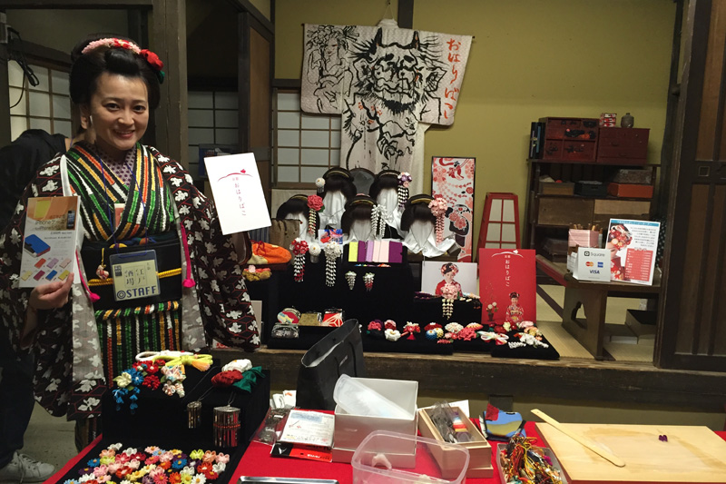 太秦映画村のセットを使い、おはりばこが映画村に出現します。 日本髪かつらにかんざしを着用した展示や、おなじみ商品の物販、かんざしのイージーオーダー、そして今回のために用意したスペシャルワークショップもご用意しています。 店舗スタッフだけでなく、工房の職人も駆けつけて、皆様をお待ちしています!